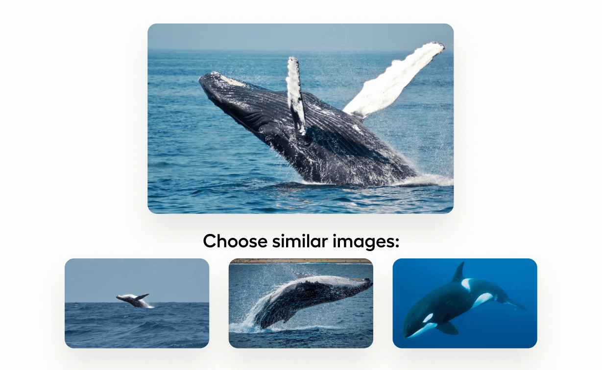 If you want to train a machine learning model on content-based image retrieval computer vision tasks, use this template. This labeling configuration displays an image and prompts annotators to select a choice corresponding to one or more similar images.