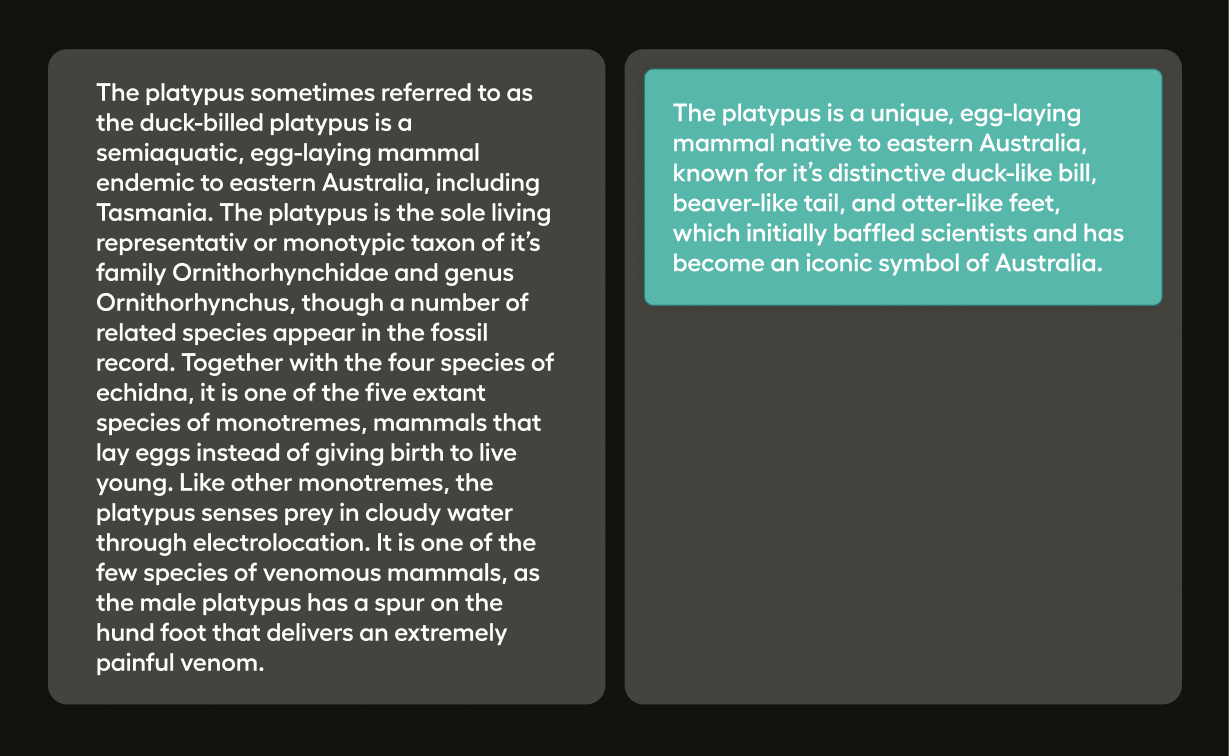 tag is used to display text provided by the input data. Given the example input data below, the text blocks are either displaying information from theprompt