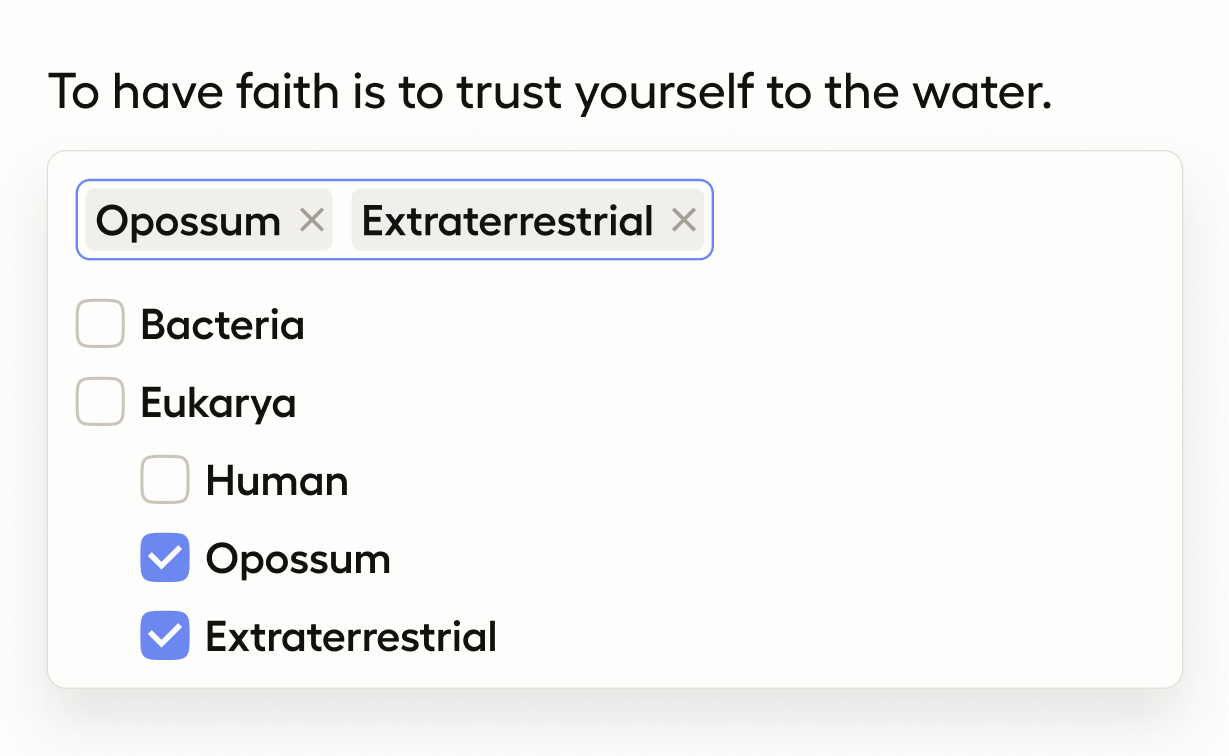 Typically, the <Taxonomy> tag is used to perform classification tasks. However, if you set labeling="true", you can apply your taxonomy choices to regions within text. This can be especially useful for NER projects.
